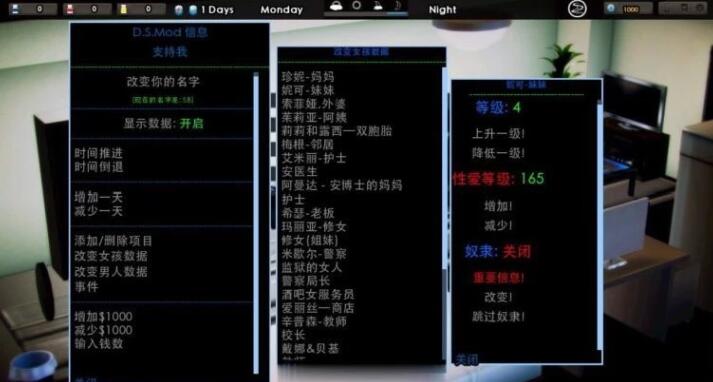 也可以通过点击图标调出作弊菜单,修改其他妹子属性和事件等级等信息(全中文)