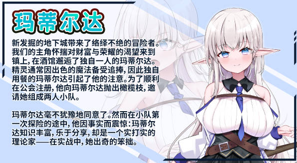 作为初出茅庐的冒险者,你遇到了神秘而美丽的精灵玛蒂尔达。