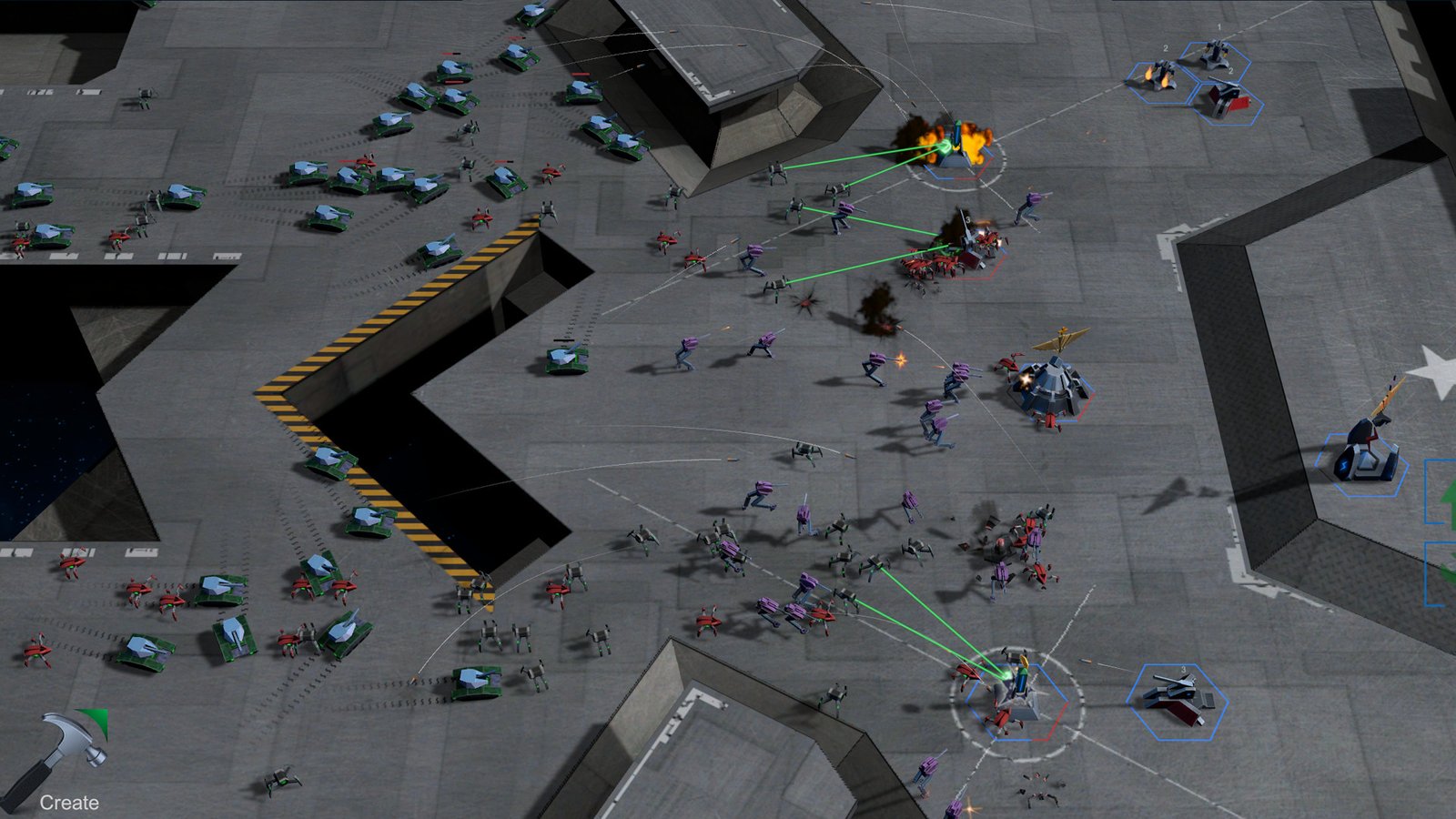 有快速推进的轻巧单位,如蜘蛛,双足机器人,也有行动缓慢的巨型单位,如激光炮,大型战车